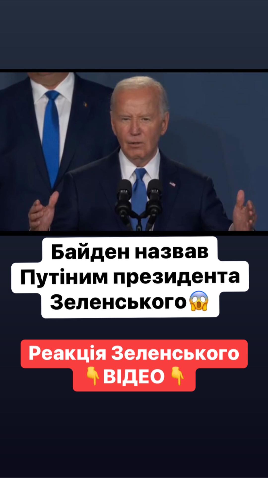 “Тепер я хочу передати слово президенту України, який такий же відважний, як і рішучий. Пані та панове, президент Путін”, — сказав Байден.
