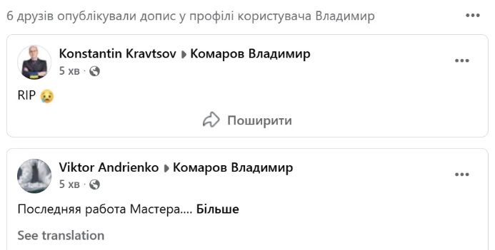 Друзі Володимира Комарвоа коментують його смерть / Скриншот з фейсбуку