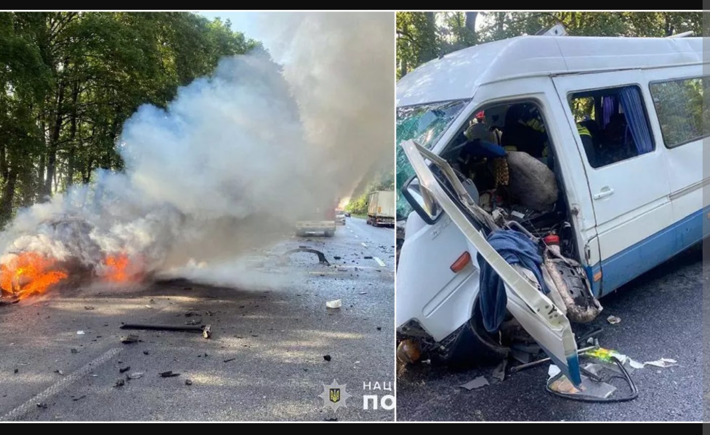 повідомленні йдеться, що аварія сталась поблизу села Вихрівка Дунаєвецької тергромади. Зіткнулися пасажирський автобус та легковик.