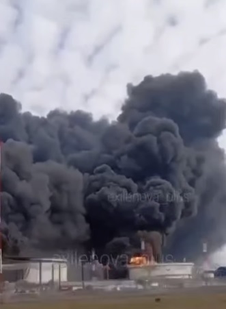 Офіційна влада заявила про пошкодження резервуару з паливом і пожежу. Її намагаються загасити, персонал евакуювали.