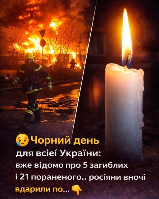 В Оболонському районі – пошкоджено офісну будівлю з подальшим горінням конструкцій та припаркованих автомобілів. Внаслідок повторного обстрілу постраждали 4 медики і двоє поліцейських. Загинули двоє працівників автосалону.