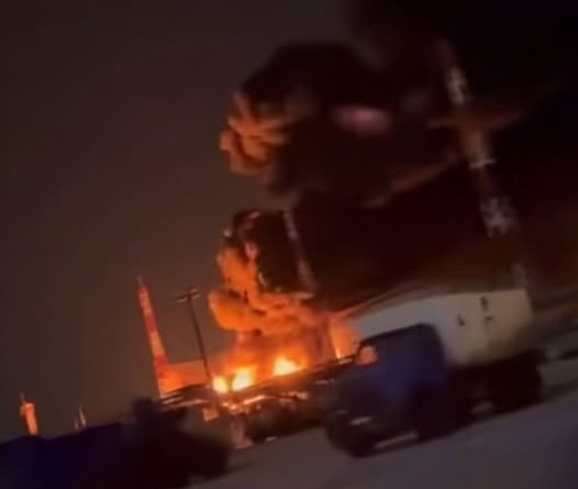 Про атаку пишуть й інші Telegram-канали. Згідно з іншими кадрами, на місцевій нафтобазі виникла пожежа.