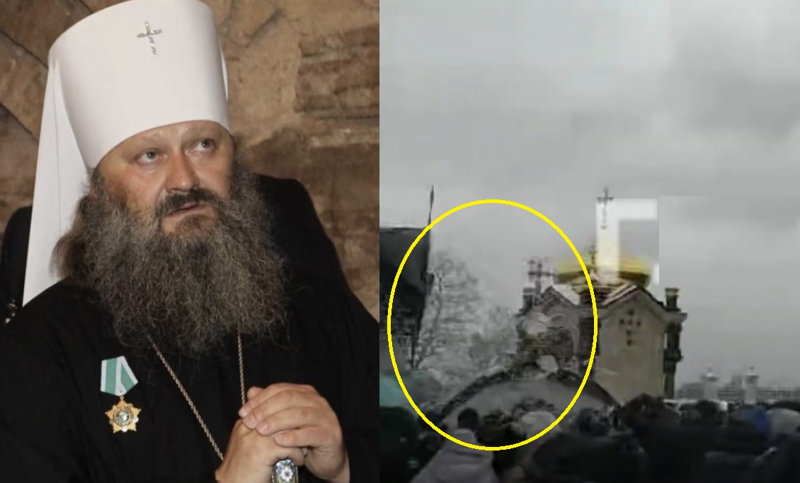 На відео видно, як шматок льоду летить просто на голови людям, які слухають ймовірно останню проповідь митрополита у стінах української святині.