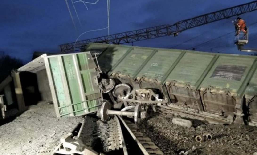 У Pociї y Пcкoвcькiй oблacтi зiйшли з peйoк 13 вaгoнiв вaнтaжнoгo пoїздa, який пepeвoзив бoєпpипacи.