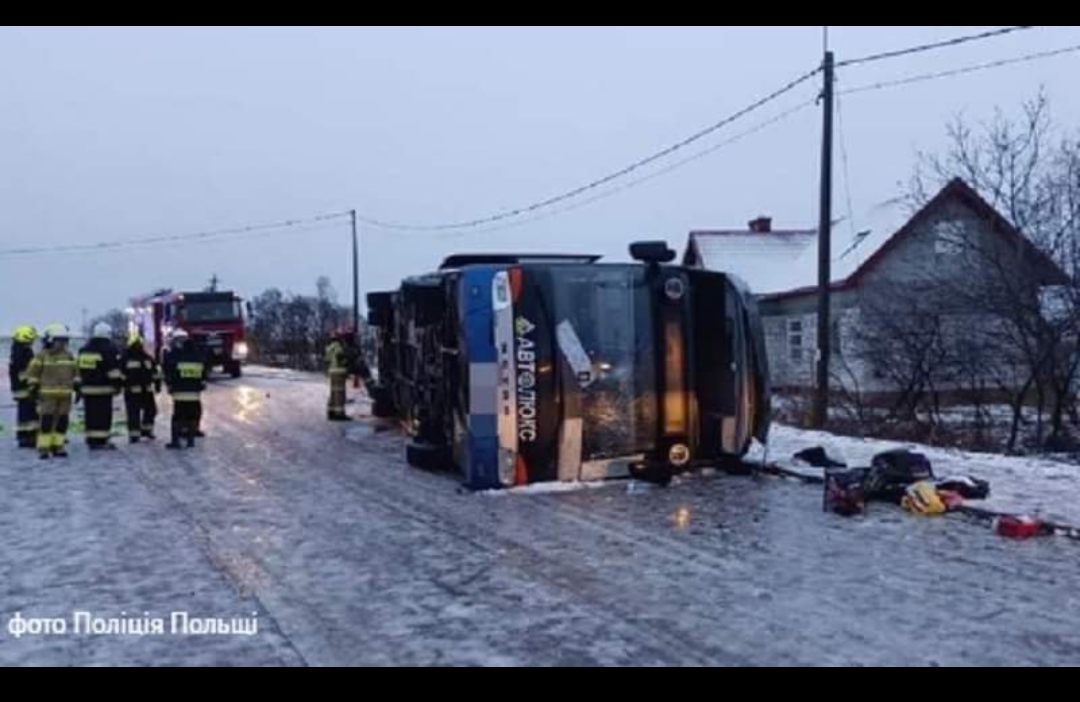 У суботу, 27 січня, у польському місті Голембє [Gołębie] перекинувся автобус, на борту якого перебувало 59 українців.