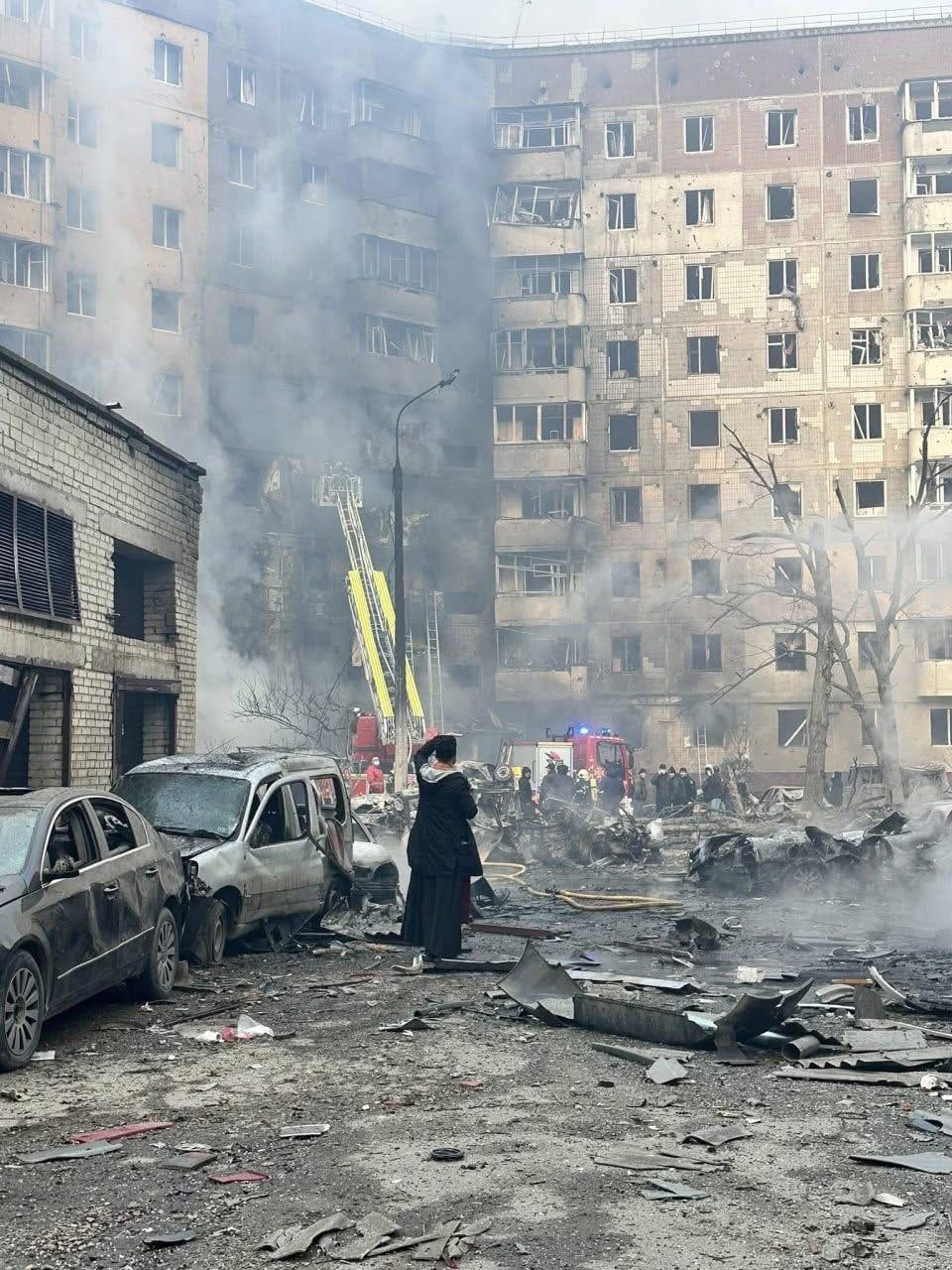 За іншою адресою зафіксовано влучання у двоповерхову будівлю. Також є потрапляння до гаражів, внаслідок чого виникла пожежа на площі близько 50 кв. м та руйнування на площі 400 кв. м. Продовжується локалізація та розбір конструкцій.