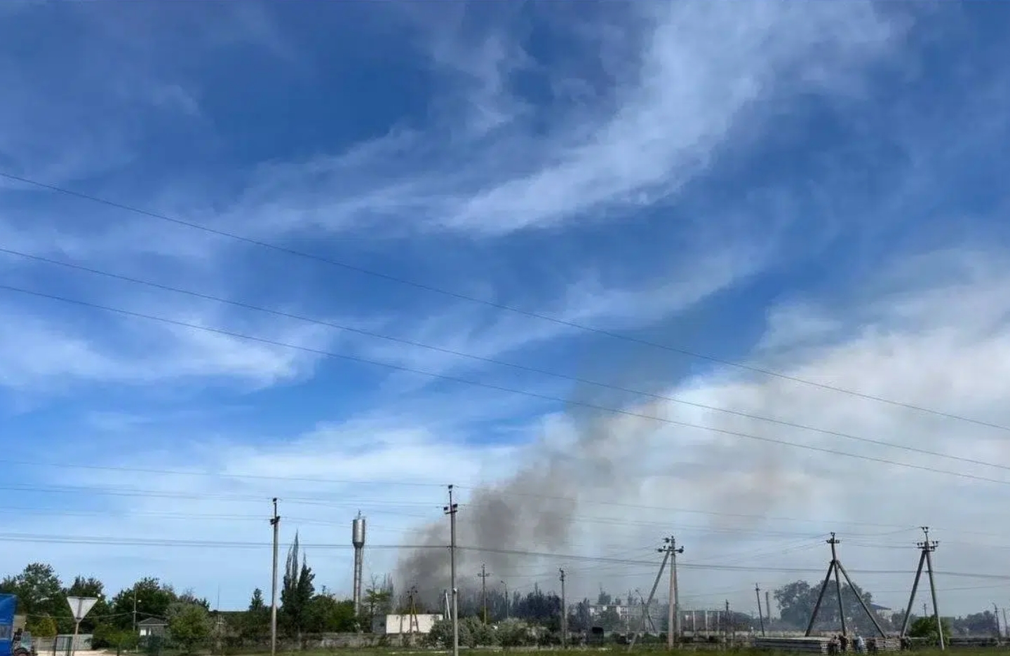 9 червня районі B тимчасово окупованого Геніческа Херсонської області пролунали вибухи, після чого в небо почали підніматися стовпи чорного диму.