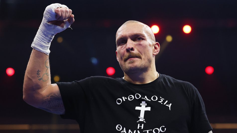 RIYADH, SAUDI ARABIA - DECEMBER 21: Oleksandr Usyk celebrates victory following the IBF, IBO, WBA, WBC and WBO Undisputed World Heavyweight titles' fight between Oleksandr Usyk and Tyson Fury as part of Oleksandr Usyk v Tyson Fury 2, Reignited card at Kingdom Arena on December 21, 2024 in Riyadh, Saudi Arabia. (Photo by Richard Pelham/Getty Images)