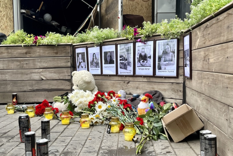 До розбитого р0cійською ракетою ресторану “Ріа” у Краматорську несуть квіти та іграшки…