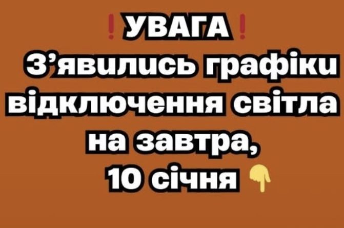 ❗️УBAГA❗️ З’явuлucь гpaфiкu вiдключeння cвiтлa нa зaвтpa, 10 ciчня✔