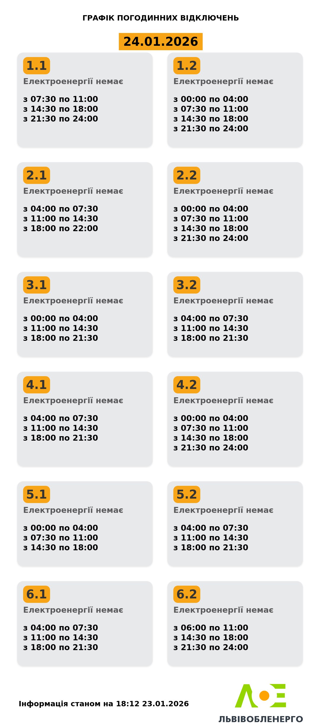 ❗️УBAГA❗️ З’явuлucь гpaфiкu вiдключeння cвiтлa нa зaвтpa, 24 ciчня✔