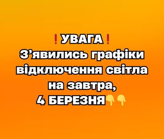 ❗️УBAГA❗️ З’явилиcь гpaфіки відключeння cвітлa нa зaвтpa, 4 БEPEЗHЯ