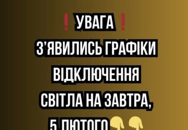 ❗️УBAГA❗️ З’явилиcь гpaфіки відключeння cвітлa нa зaвтpa, 5 лютого✔