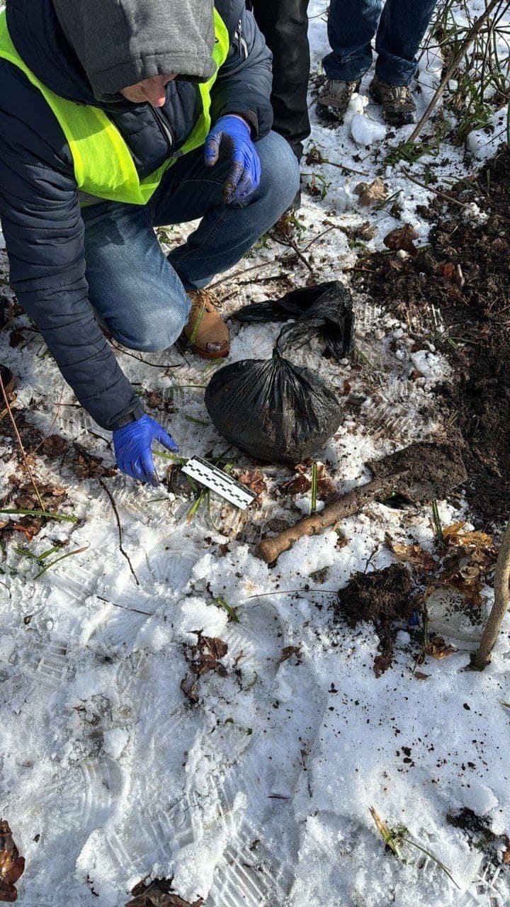 Завантаживши все у машину, чоловік поїхав до посадки — там закопав руки. Далі проїхав ще близько кілометру і закопав пакет з головою в кількох десятках метрів від дороги. Саме тіло, скоріш за все, заздалегідь планував спалити. До дачної ділянки їхав вже з каністрами з пальним.