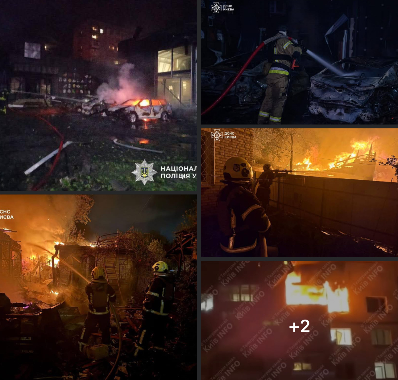 ▪️Київ: 11 постраждалих, з них — 2 дітей. Руйнування і пожежі в трьох районах. Палали автівки та будинки.