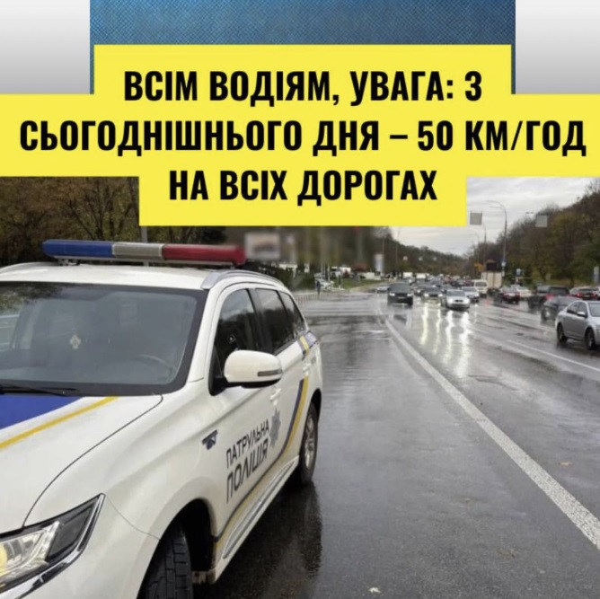 Відсьогодні, 1 листопада, швидкість руху столицею обмежується до 50 км/год. Про це розповідає стіна з посиланням на матеріал, оприлюднений на сторінці КМДА.